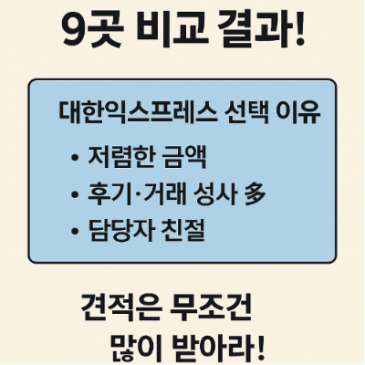 무엇보다 눈에 띄었던 건 가격 차이였습니다. 최종 선택한 '대한익스프레스'와 비교했을 때, 다른 곳들은 많게는 60만 원 이상 높은 견적을 내기도 했습니다. 흥미롭게도 금액이 높을수록 설명이 형식적이고 성의가 부족하다는 인상을 받았죠. 여러 곳에서 견적을 받으며 고민하던 끝에, 우연히 마지막 순서로 만난 '대한익스프레스'가 가장 합리적인 가격을 제시했습니다. 그 순간, 정말 기다린 보람이 있구나 하는 생각이 들었습니다.