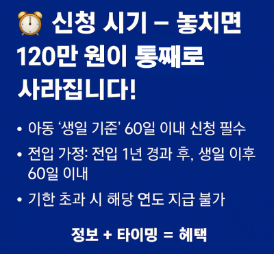 ⏰ 신청 시기 – 놓치면 120만 원이 통째로 사라진다!