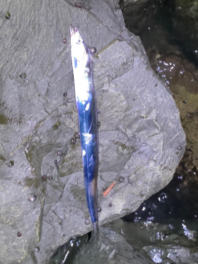 5시 40분경, 메탈 지그를 달고 삼치를 노리던 중 옆 동료의 낚싯대가 크게 휘어졌습니다. 드디어 3자급 삼치 한 마리가 올라온 것이었습니다. 흐린 아침빛 속에서 요동치던 삼치의 파워는 풀치와는 또 다른 손맛을 보여주었습니다.