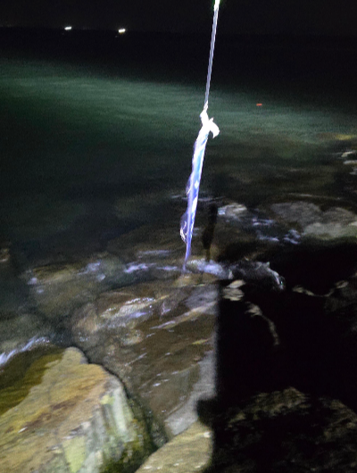 하지만 그 기쁨은 오래가지 않았습니다. 이후 자정까지 우리 자리에서는 단 한 마리도 올라오지 않았습니다. 좌측 라인에서는 입질조차 없었고, 우측에서만 간간이 풀치가 걸려 올라오는 상황이 이어졌습니다. 캐스팅을 반복하면서도 입질이 없는 낚싯줄을 바라보는 시간은 끝없이 길게 느껴졌습니다. 결국 우리는 회의를 거쳐 자리를 옮기기로 결심했습니다. 더 깊은 수심과 조류가 있는 곳을 찾아야 한다는 판단이었죠.